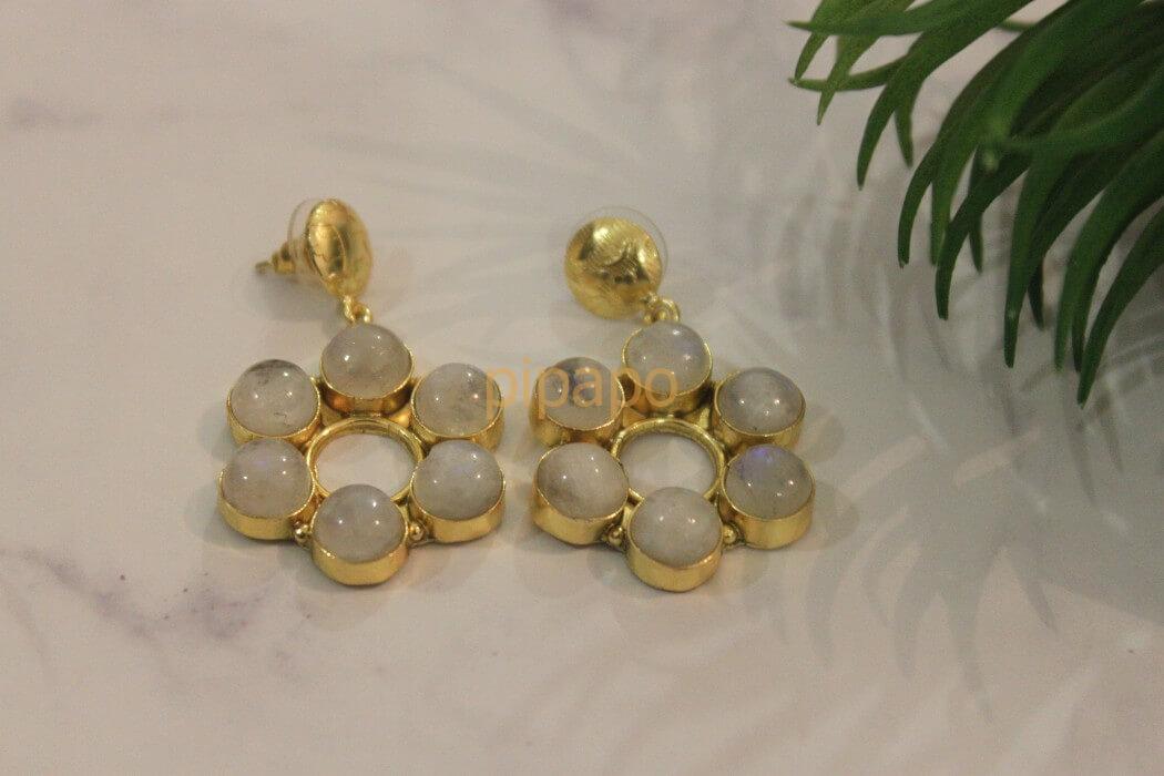 Ignite your positivity with the Rainbow Moonstone - generally :) Our Moonstone Flower Earring has a lovely shine, that will go along-with any outfit of yours!