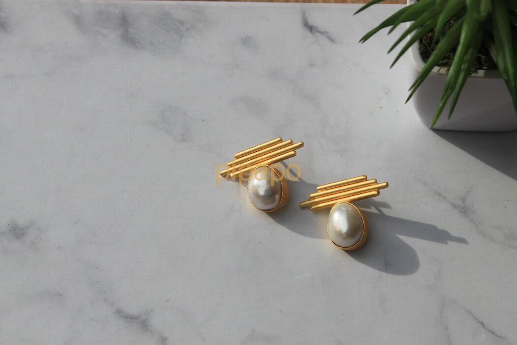 • The line pearl studs are available in flat pearls and fluffed pearls. They are simple with minimal elegance.