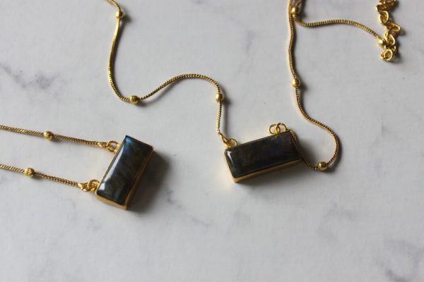 Not too crowded, with this beautiful Labrodite stone with the dotted chain.