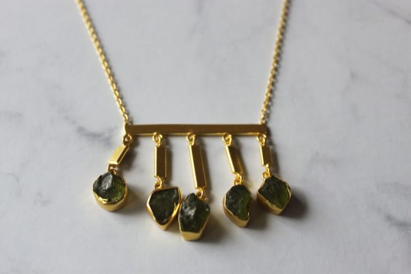 Go-Green! Protect yourself with the negative emotions. This elegant dangling charm necklace with 5 peridots is our love and one of the quick selling chains.