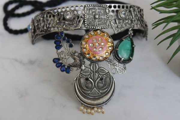 This contemporary necklace design has elements of peacock, again a modern-ethnic design for contemporary aesthetics.