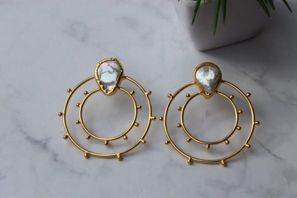 The shine and shape of the Baroque Pearl along with the dotted rings. Simply Beautiful and Elegant! Dress up Ladies!